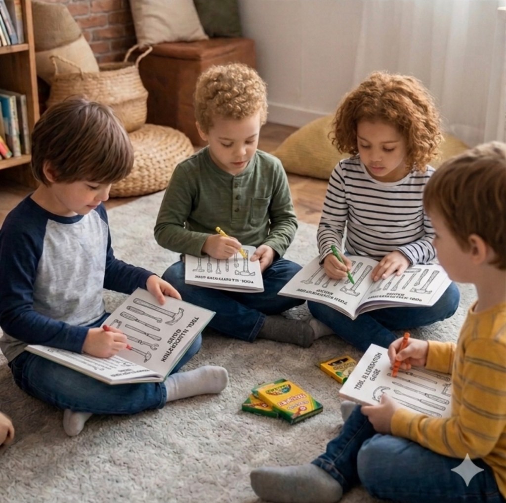 The coloring book format works precisely because of this principle. A child who spends twenty minutes coloring a detailed illustration of a flashlight — its lens, its grip, its beam of light — has built a richer, more durable mental representation of that object than a child who merely heard it mentioned. The hand encodes what the mind alone would forget.